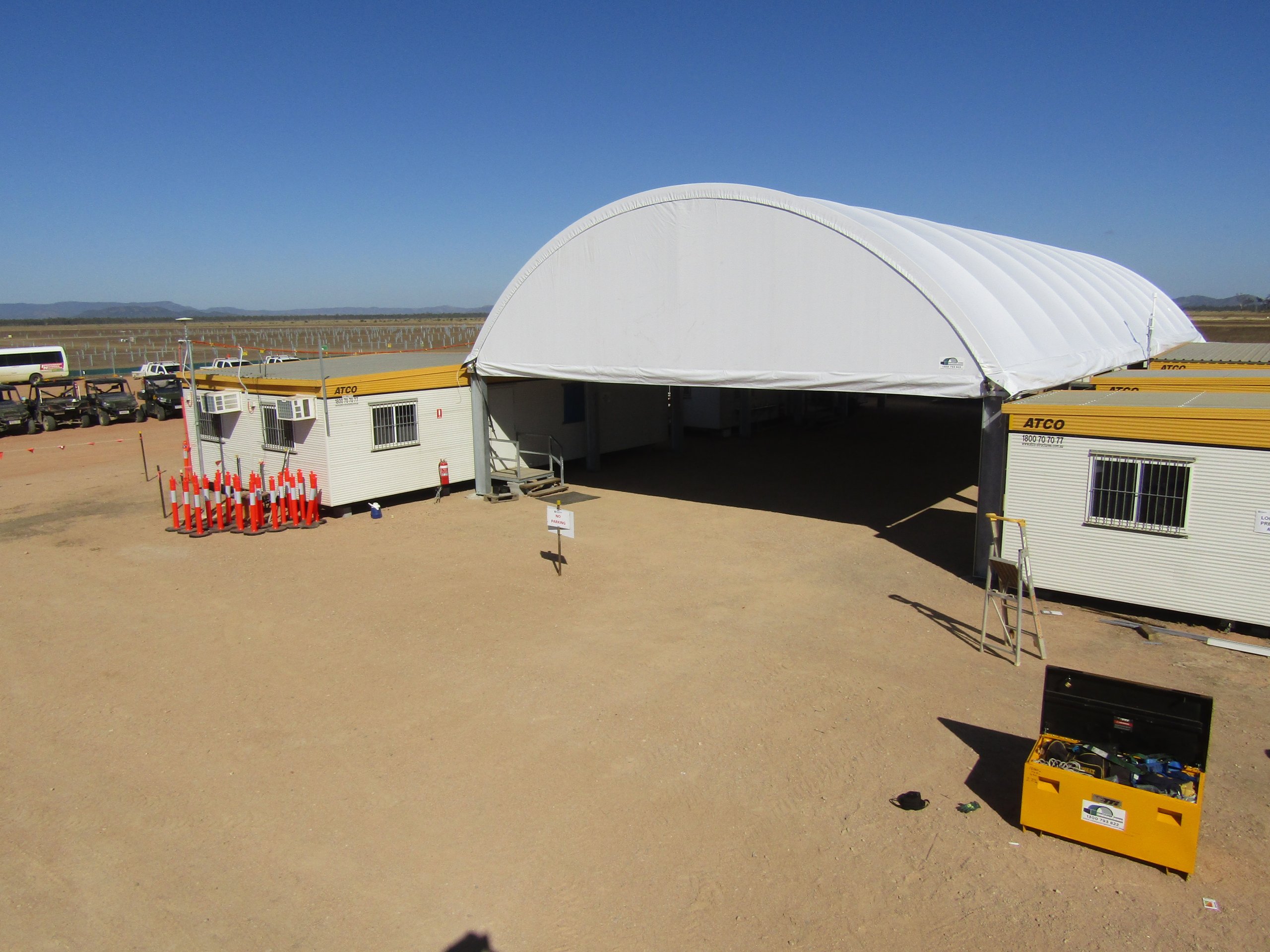 RCR Tomlinson engaged Container Domes Australia to design and install a temporary, bespoke shelter connecting existing site offices and buildings at their Haughton Solar Farm in Queensland.